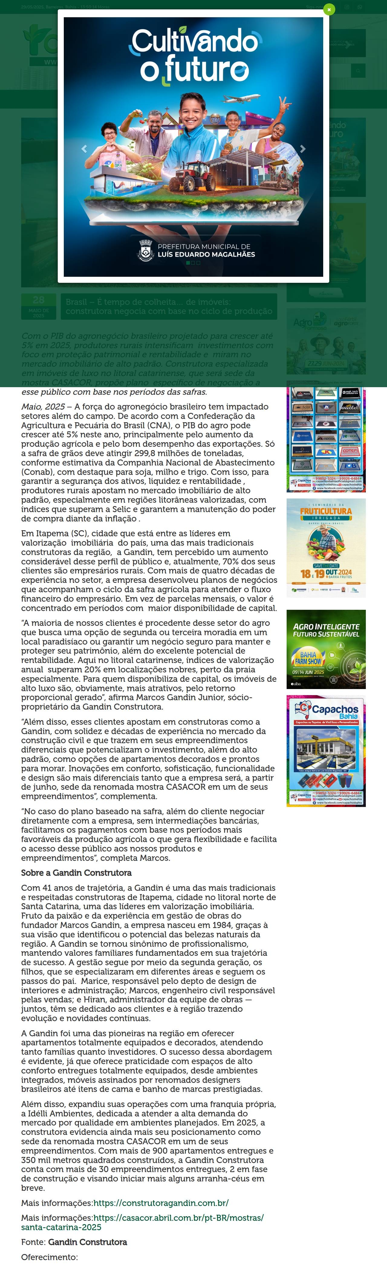 Brasil - É tempo de colheita... de imóveis: construtora negocia com base no ciclo de produção